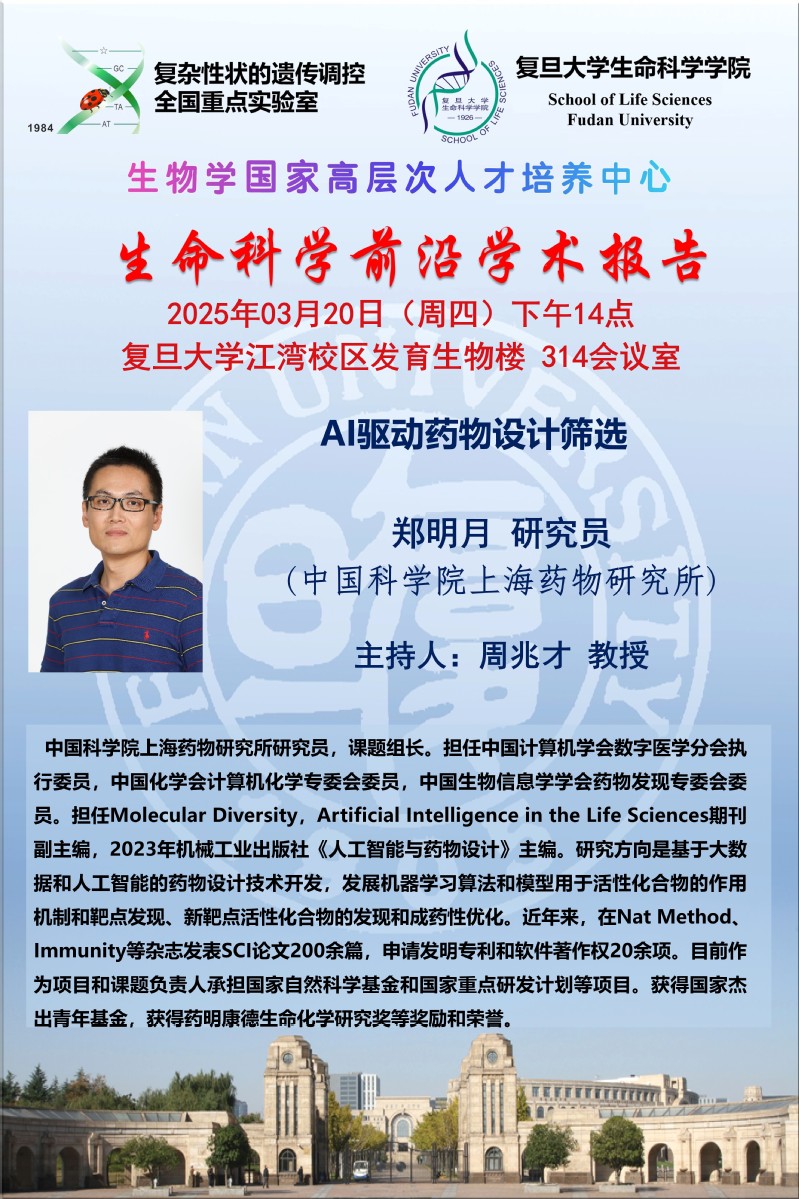 生命科学前沿学术报告--2025-3-20(周四)14:00,郑明月 研究员 (中科院上海药物研究所)
