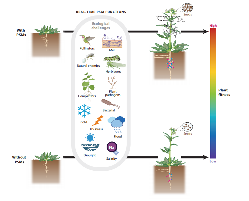 图1 展示了对PSM缺失或沉默植物的生态挑战,以研究PSMs的生物学功能。