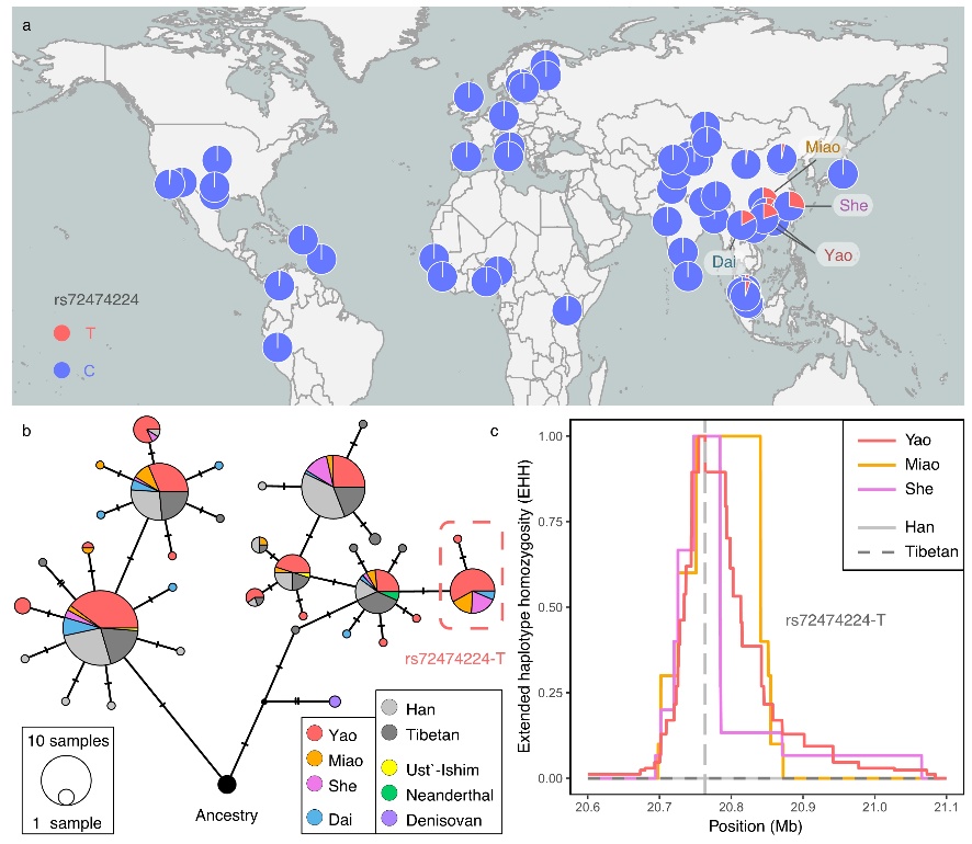 苗瑶人群主要分布在我国南部及东南亚地区,是中华民族中不可或缺的重要组成部分。苗瑶语的分类和归属在语言学界一直具有较大争议。不少学者认为苗瑶语是独立语系,即苗瑶语系,而一些学者则认为苗瑶语是属于汉藏语系的语族,即苗瑶语族。不同学者对于苗瑶语的内部分类也在细节上有不同的看法,其中关于畲语究竟是归属于苗语支(族)还是瑶语支(族)也是争议较多问题。遗传学研究很早就发现了语言与基因之间的密切关系。该项研究正是通过群体遗传学分析厘清现生苗瑶人群的亲缘关系并以基因谱系为信息载体追溯苗瑶人群的起源和演化历史,并对苗瑶语系人群的基因组多样性本身进行了系统分析,寻找苗瑶人群基因组中保留的特征性基因变异,推断这些古老族群的演化历程及其背后的机制。