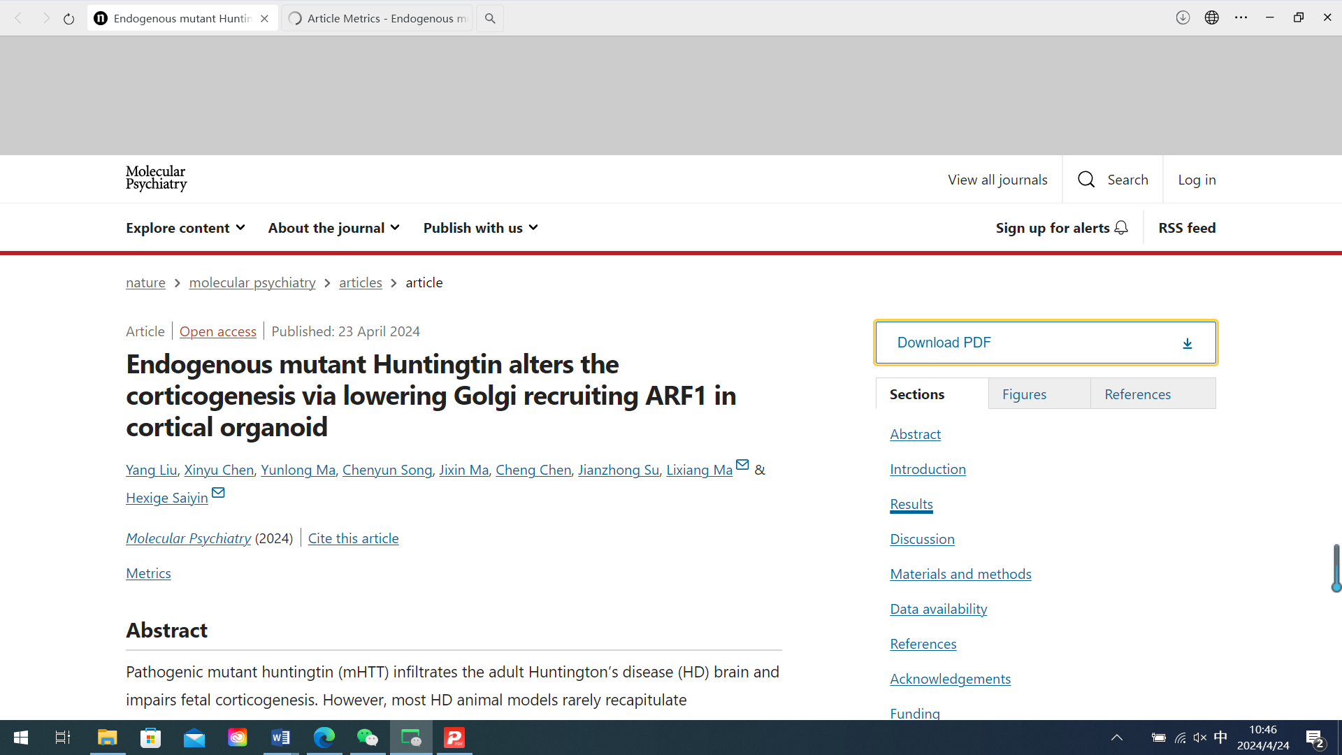 Liu, Y., Chen, X., Ma, Y. et al. Endogenous mutant Huntingtin alters the corticogenesis via lowering Golgi recruiting ARF1 in cortical organoid. Mol Psychiatry (2024). //doi.org/10.1038/s41380-024-02562-0