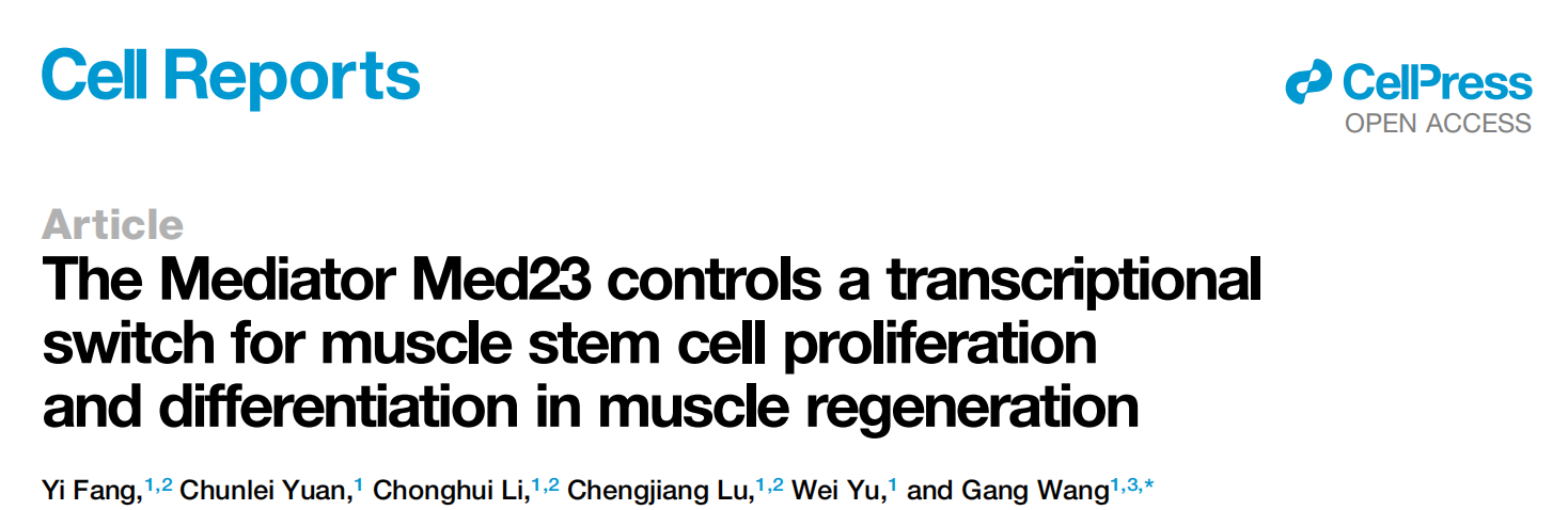 总的来说,这项研究揭示了MED23亚基可以作为肌肉干细胞增殖和分化的分子开关,在MuSCs介导的肌肉再生中发挥重要功能,为进一步理解肌肉再生生物学的分子机制提供了有价值的见解。