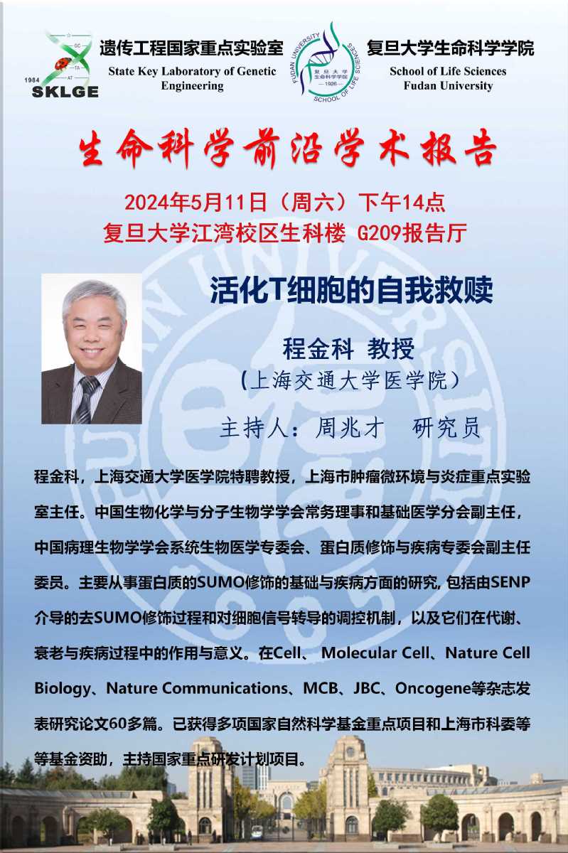 生命科学前沿学术报告-2024年5月11日(周六) ,程金科教授 (上海交通大学医学院),生科院G209
