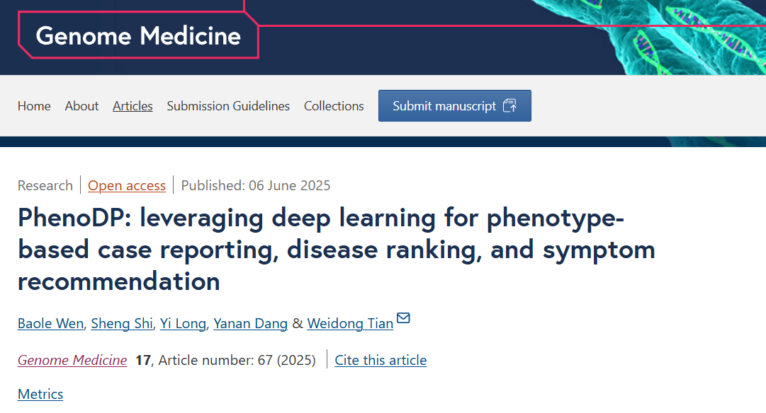 2025年6月6日,耽美漫画 田卫东教授课题组在 Genome Medicine期刊在线发表了题为《PhenoDP: Leveraging Deep Learning for Phenotype-Based Case Reporting, Disease Ranking, and Symptom Recommendation》的研究论文。该研究开发了一种新颖的表型驱动诊断工具 PhenoDP,融合大型语言模型(LLM)与对比学习技术,显著提升了孟德尔遗传病的诊断效率与准确率,为临床罕见病辅助诊断提供了高效、智能的解决方案。