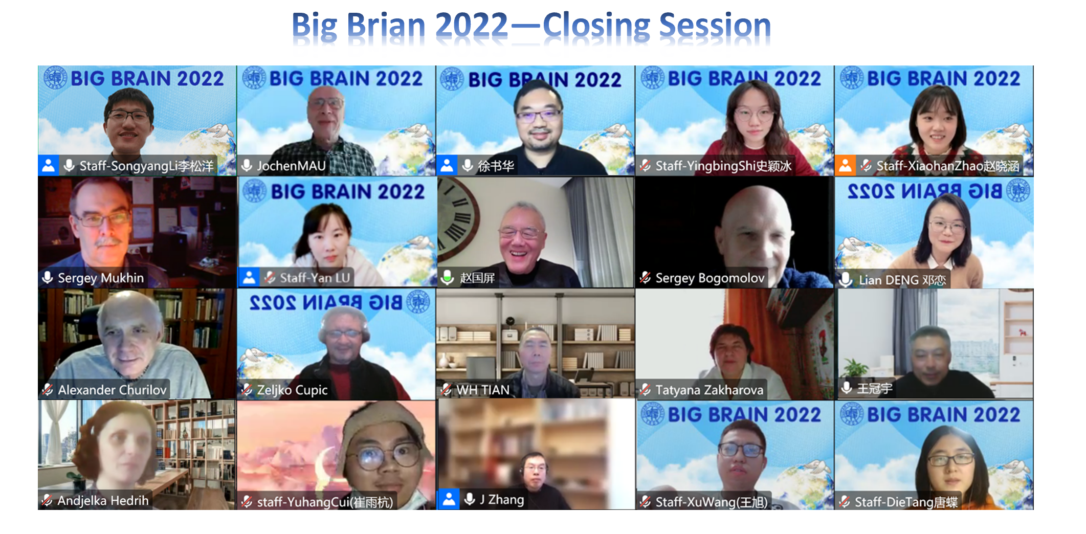 会议闭幕式上,中国科学院院士、BIG BRAIN联合发起人赵国屏教授表示,本届BIG BRAIN是一场年轻化(Young Brains)、国际化(International Brains)的学术盛宴,更是一场横跨欧亚地区历史、文化的交流与融合。跨学科的国际交流开创了整合系统生物学发展的新纪元,在新的时代“Big Brains”要携手面对新的挑战(Big Challenges)。Jochen Mau教授回顾了自2010年以来BigBrain亚欧地区长期的合作历史与杰出成果;各国与会代表均对耽美漫画 在亚欧地区学术交流与合作中起到的关键性作用给予充分肯定。会议最后,耽美漫画 徐书华教授代表本次会议的主办方进行了会议总结和展望,为期五天的BIG BRAIN 2022亚欧合作研讨会顺利落下帷幕。