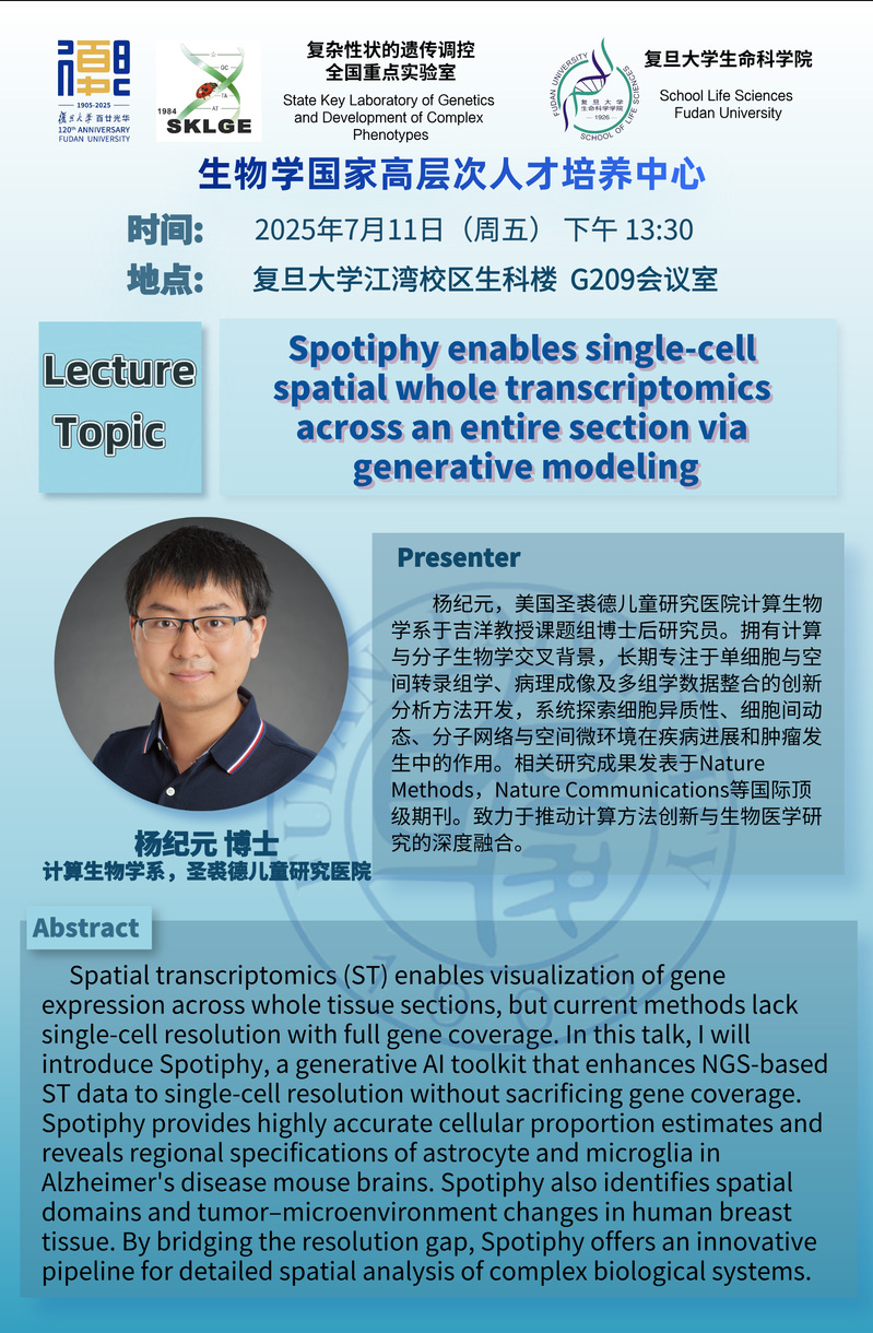 学系特别邀请学术报告-2025-07-11(周五) 13:30,杨纪元 博士(美国圣裘德儿童研究医院计算生物学系)