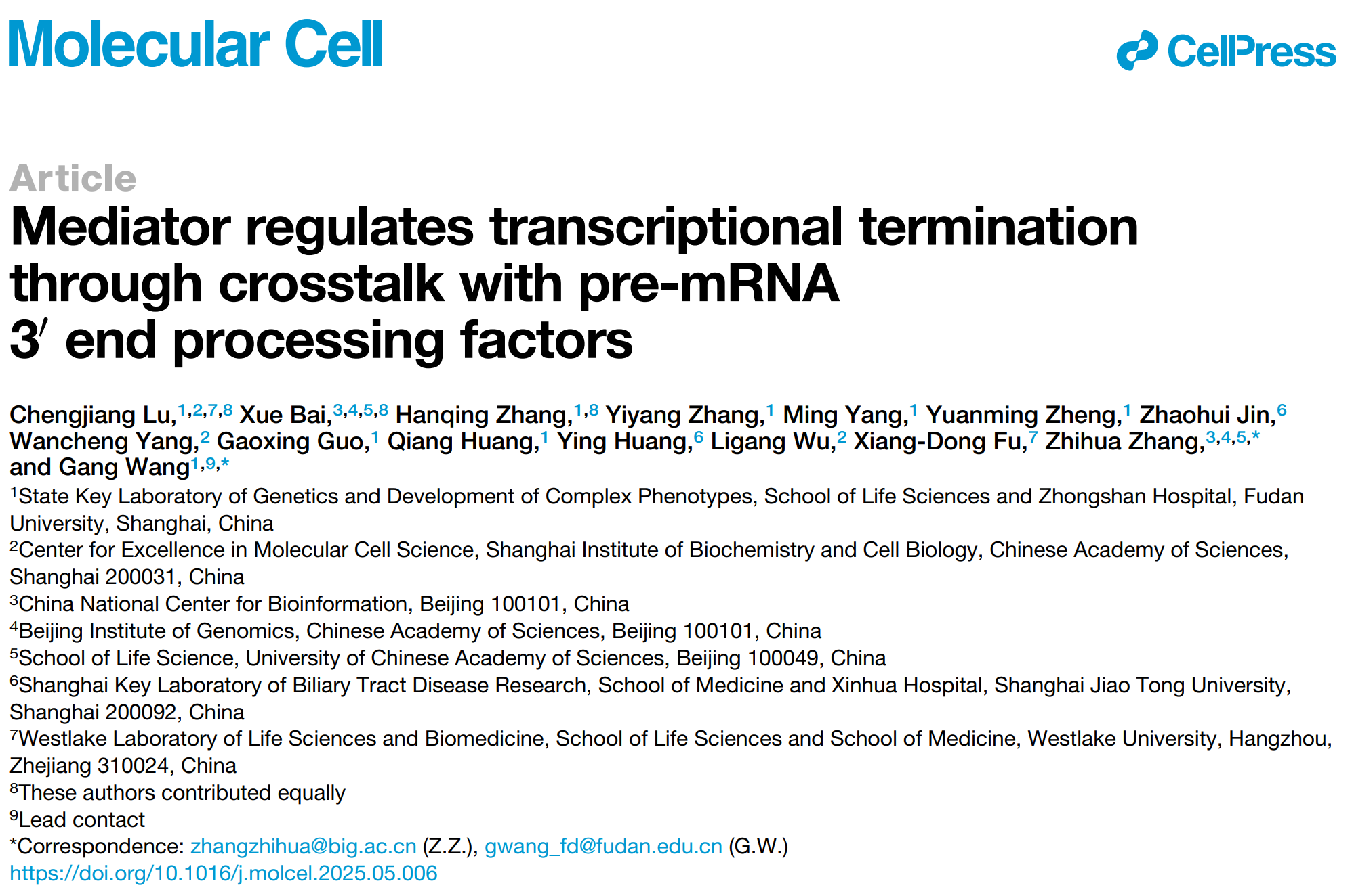 2025年6月5日,耽美漫画 王纲教授团队联合北京基因组所张治华团队在Molecular Cell杂志上发表了题为Mediator regulates transcriptional termination through cross-talk with pre-mRNA 3' end processing factors的文章。该研究首次揭示了转录中介体通过与CPSF复合物相互作用调控转录终止过程,而该机制的失调可能与癌症中广泛存在的转录通读现象密切相关,这为理解癌症的发生发展提供了新的视角。