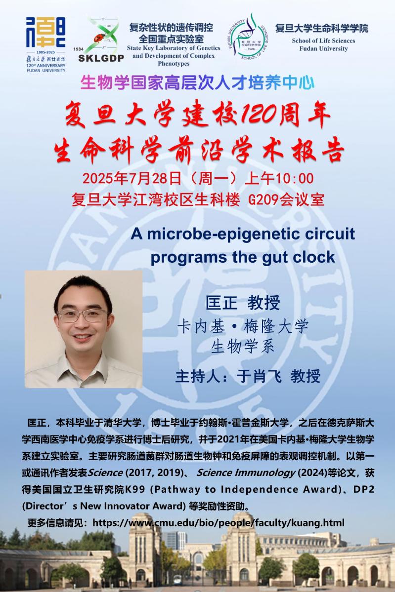 生命科学前沿学术报告-2025-07-28(周一) 10:00,匡正 教授 (卡内基·梅隆大学 )