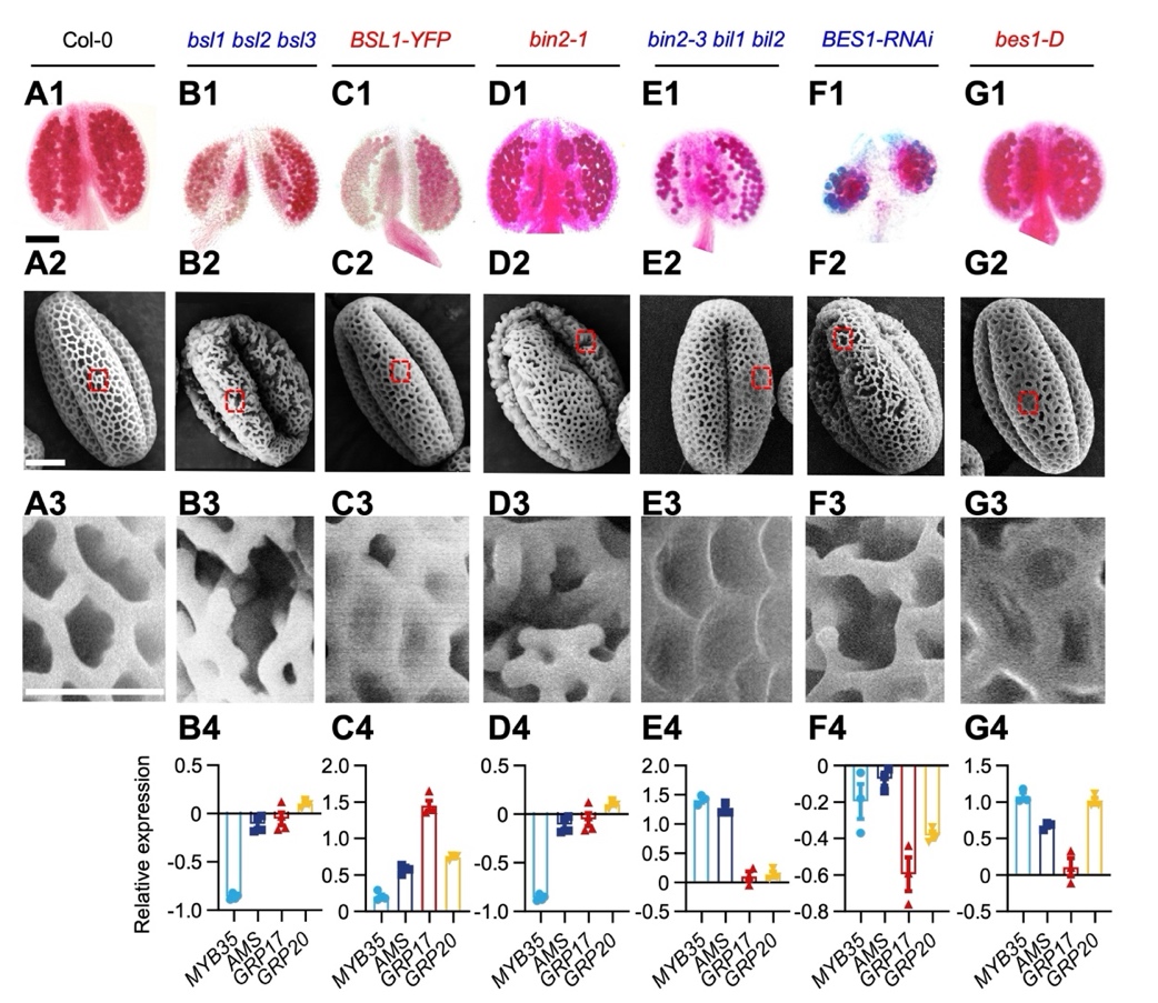 图 2 BSLs-BIN2-BES1 模块是花粉壁正常发育所必需的。