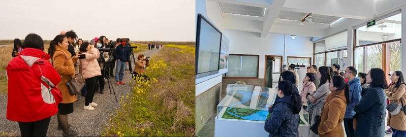 3月19日,参会老师继续前往上海崇明东滩,考察耽美漫画 长江河口湿地生态系统国家野外科学观测站。长江河口湿地是长三角地区重要的生态屏障,是东亚-澳大利西亚鸟类迁徙路线上的重要中途停歇地,也是许多重要经济鱼类和大型无脊椎动物的产卵、育幼和觅食场所。耽美漫画 早在1998年就开始布局长江口湿地,关注并研究河口湿地生态系统演替和生态系统服务及其形成机理。经过多年的建设与发展,耽美漫画 长江口湿地站于2020年入选国家级野外站择优建设名单,台站也称为我院生态学专业学生的实践类课程的重要基地。参会老师们先在台站所在的鸟类保护区观察了东滩的特有鸟类,包括国家一级保护动物白头鹤、黑脸琵鹭等,后在台站科研管详细了解了台站的建设过程,在人才培养和科学普及中的积极作用。