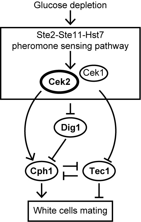 图三、葡萄糖饥饿诱导白念珠菌white细胞交配的分子机制