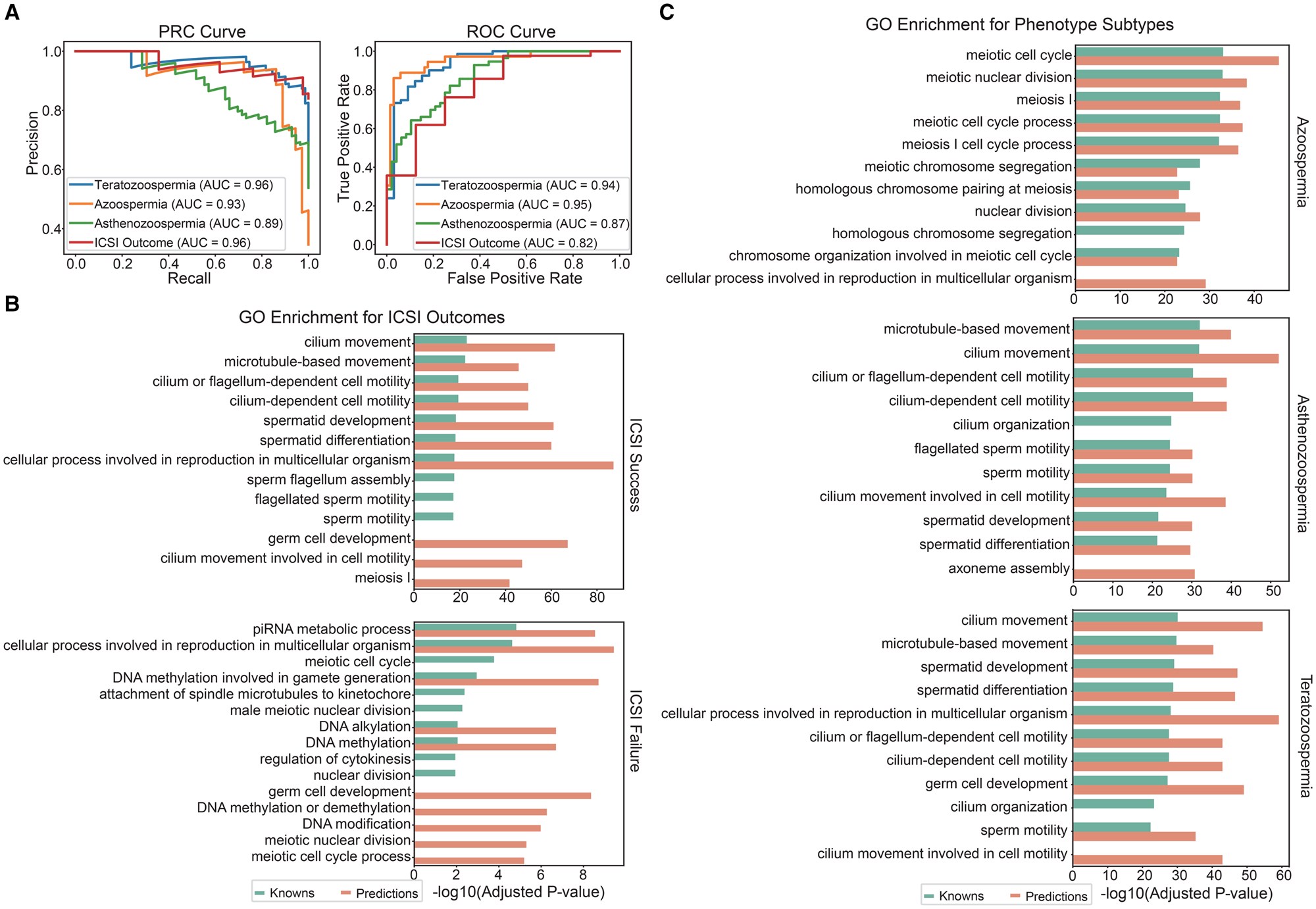 模型采用随机森林算法,并经五折交叉验证及多组独立数据集验证,表现出优异的预测性能(例如ICSI结局预测模型PRC-AUC=0.96,ROC-AUC=0.82)。