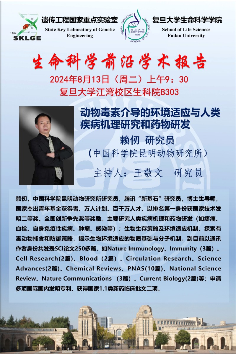 生命科学前沿学术报告-8月13日(周二)9:30,赖仞 研究员,中国科学院昆明动物研究所
