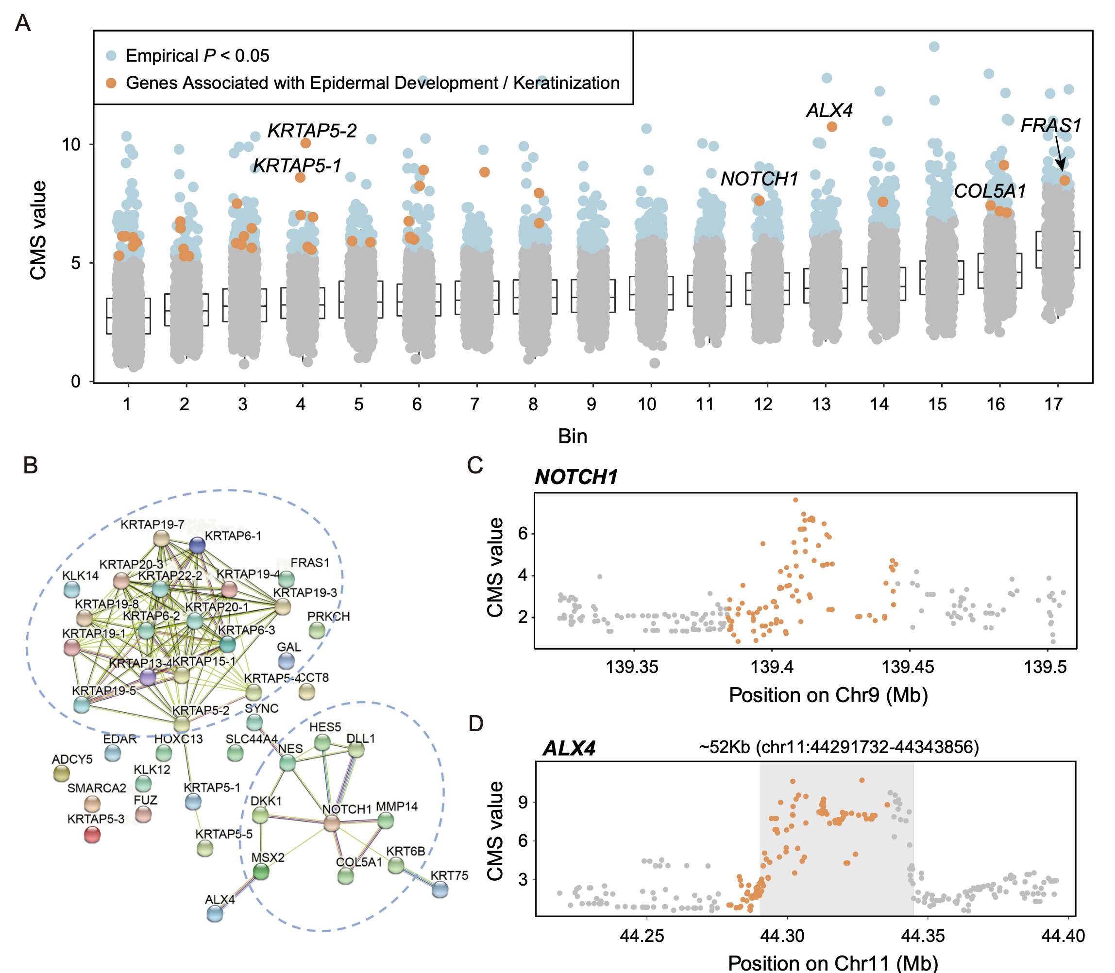 图4. 新疆塔吉克族中与表皮发育和角质化相关的基因呈现适应性进化特征