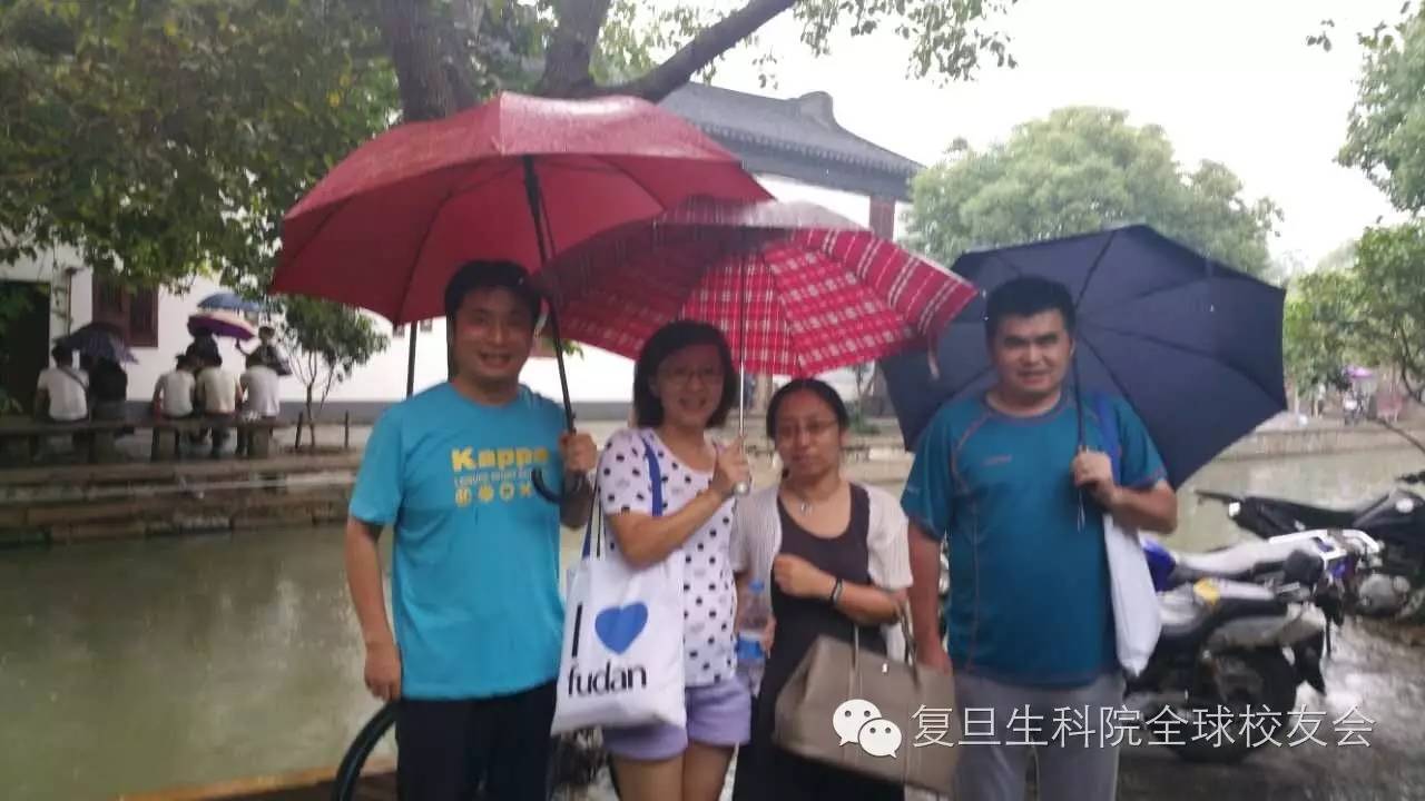 第二天一早,大伙登上大巴,去青浦朱家角古镇烧烤游览,虽然天公不作美,大雨滂沱,大家依然游兴不减,道不尽的往事,说不尽的当年。晚餐、唱歌、棋牌,甚至还有通宵球赛,将校友们的聚会推向一个又一个高潮。