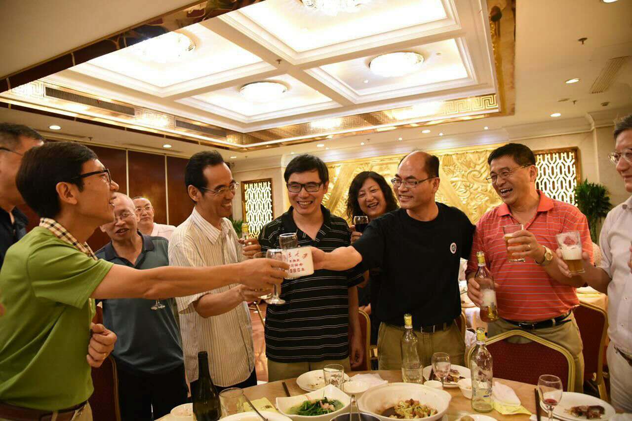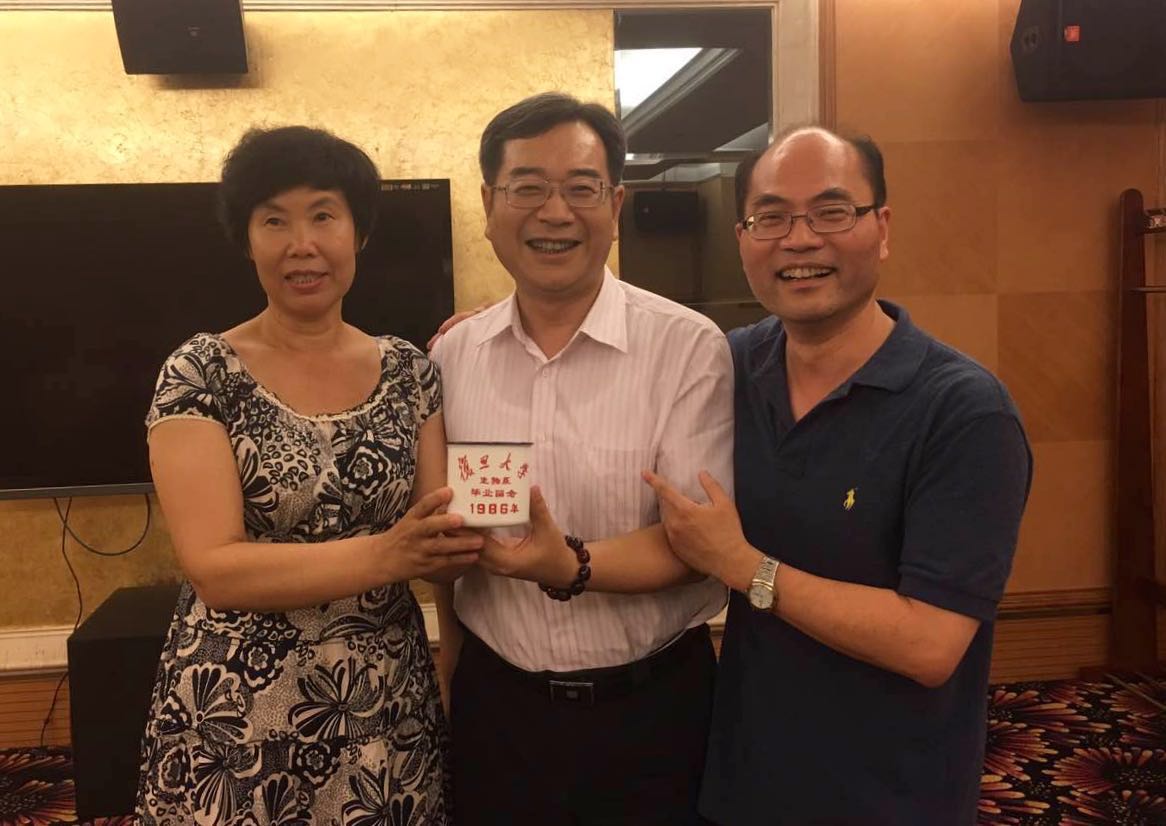 座谈会结束,大家一起穿过校园,来到复宣酒店,与读书时的任课老师们共进午餐。看到阔别三十年的老师们,大家觉得无比亲切,每一位校友念及老师的殷殷教诲时心中总生出诚挚的感动和无限的感激,大家情不自禁得纷纷举杯向敬爱的老师们敬酒。席间,气氛热烈,师生相聚其乐融融,大家一起回忆着复旦读书时的点点滴滴。谈到高兴处,微生物班的周德庆和陈永青老师更是即兴演唱了世界名曲《我的太阳》,周德庆伉俪还合唱俄罗斯名曲《喀秋莎》,优美的歌声博得一片喝彩。