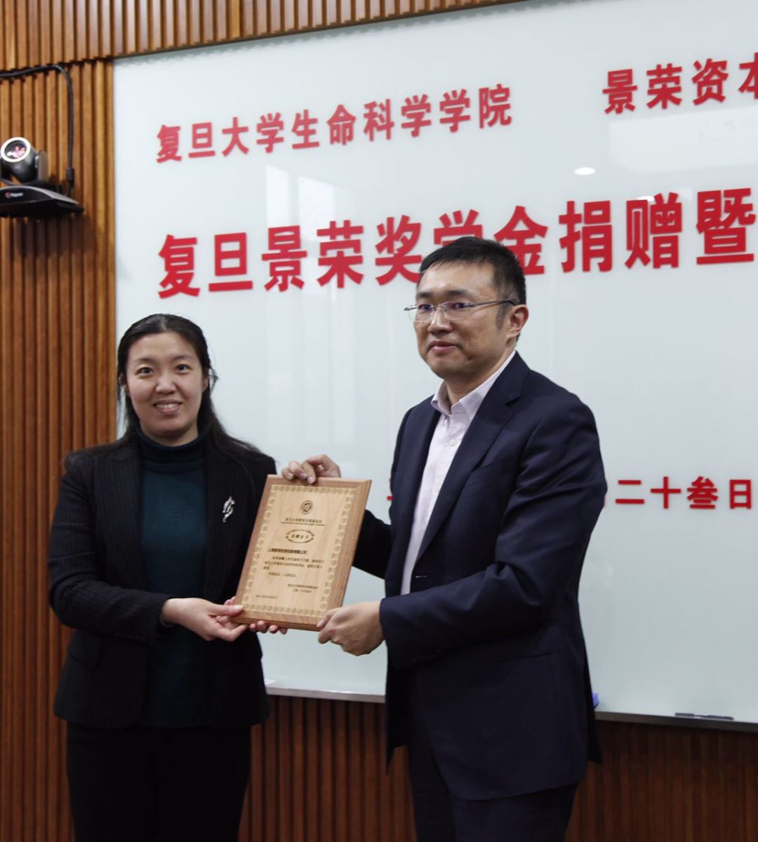 3月23日下午,复旦景荣生命科学奖学金捐赠暨颁奖仪式在耽美漫画 A208会议室隆重举行。耽美漫画 对外联络与发展处副处长陆颖丰、耽美漫画 党委书记陈浩明、副院长卢大儒、研工组组长余文博、上海景荣投资控股有限公司副总裁钱庭栀、景荣生命科学奖学金学生代表等出席捐赠仪式,仪式由陈浩明书记主持。