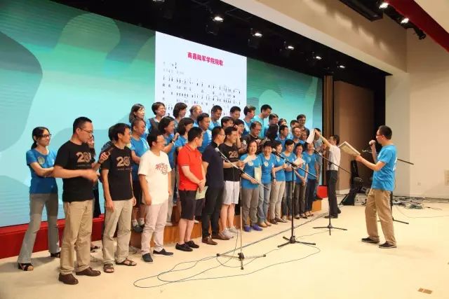 晚会正式开始,我院校友等大连陆院军训生当仁不让,率先上台合唱《大连陆院之歌》。南昌陆院军训生们亦不遑多让,一曲即兴合唱的《南昌陆院之歌》将大家带回激情燃烧的岁月。