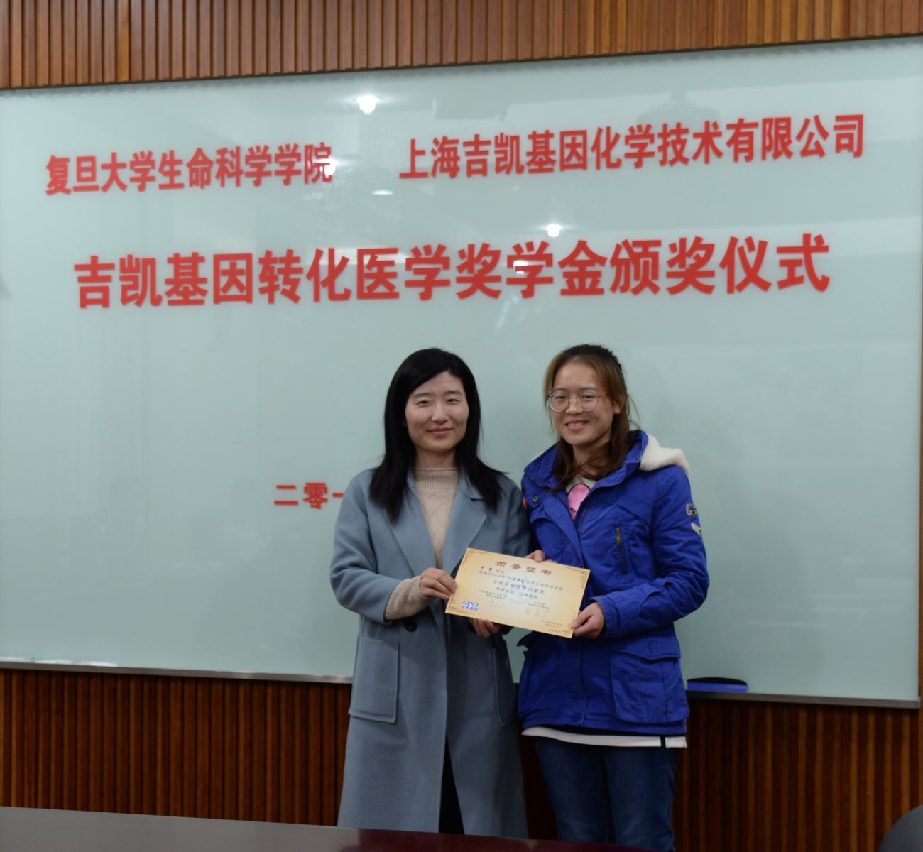 为支持转化医学事业的发展,鼓励优异的复旦学子,满足生命科学行业对人才的需求,吉凯基因与复旦生命科学院于2016年共同设立并颁布了此项奖学金。此项奖学金的设立,亦是吉凯基因董事长曹跃琼女士作为复旦校友对母校的真诚回报与贡献。集团副总裁朱向莹博士应邀出席此次颁奖礼。此外,本次颁奖礼还得到了耽美漫画 校领导的极大关怀,耽美漫画 对外发展与联络处处长杨增国老师代表学校到场祝贺。