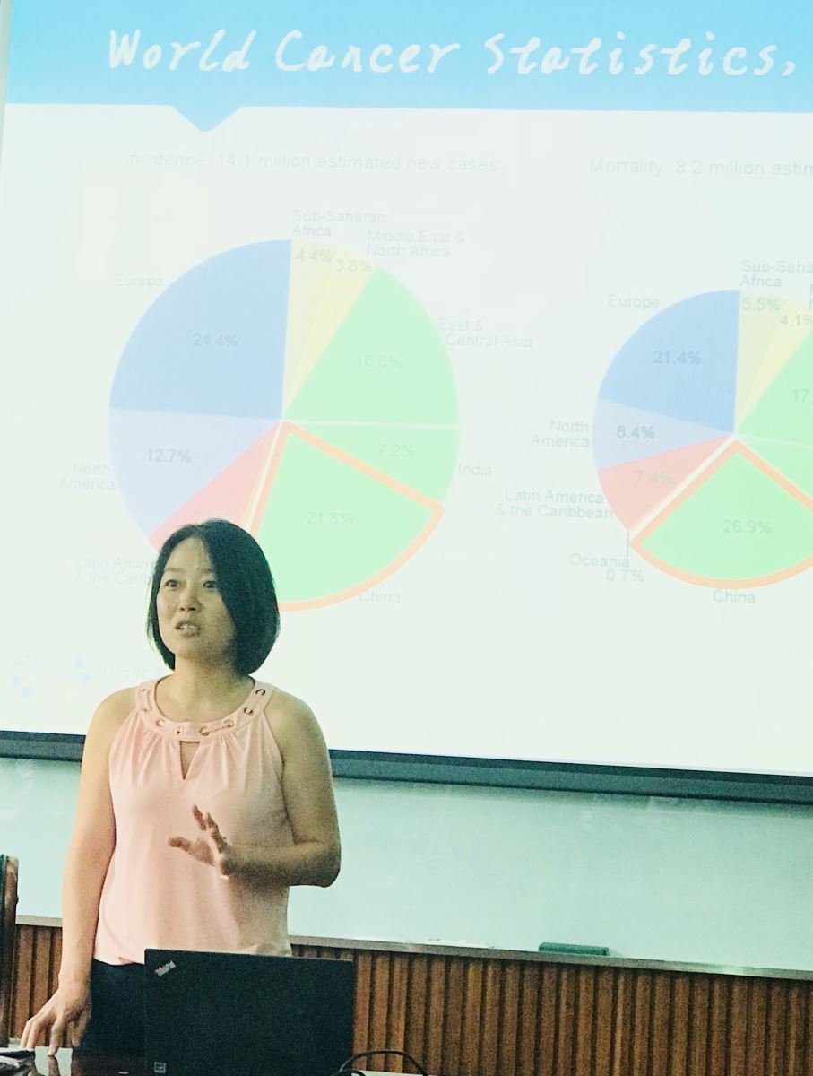 鹍远CTO刘蕊博士还进行了一场题为“甲基化检测在肿瘤早期筛查和诊断中的应用”的学术报告,精彩的报告得到了老师们的肯定和赞扬,并期许鹍远基因能够早日攻克癌症筛查的世界级难题,造福人类。