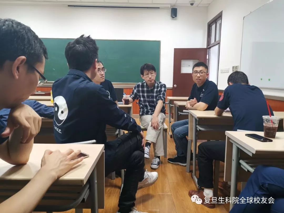 班会后,各级返校校友单独相聚,年轻的校友们纷纷介绍了各自离校后的经历,工作上生活上,虽然各人的人生经历大不相同,但所有人都同意自己的成功在相当程度上得益于祖国这些年来的发展、自己在复旦所受的教育与熏陶、和在复旦认识的新老朋友师长的关心与帮助。几乎所有校友都在眉宇间显示出对当前生活的满意与感恩。校友们妙语连珠,会议室里时时爆发出阵阵笑声。