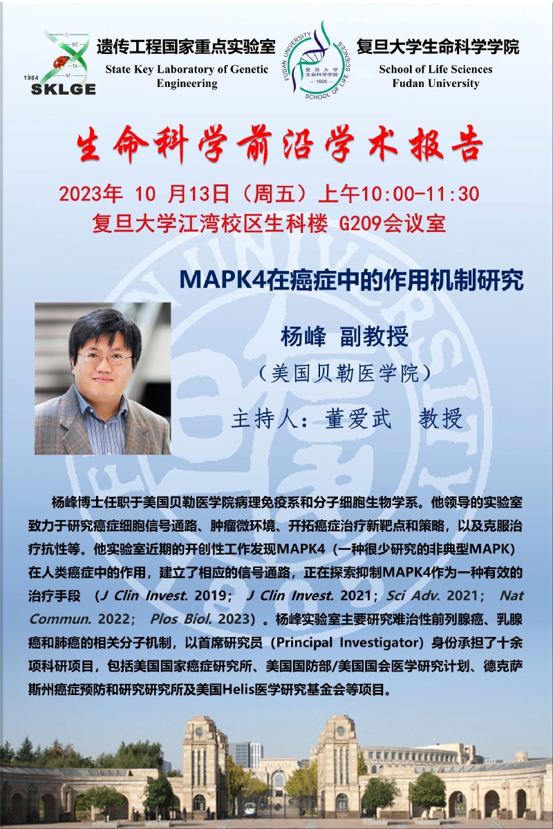 生命科学前沿学术报告-2023-10-13(周五)10:00,杨峰 副教授(美国贝勒医学院)