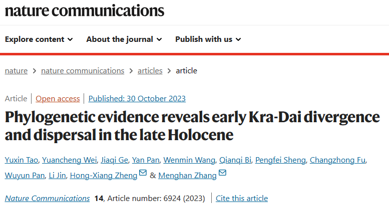 郑鸿翔课题组等多家单位的合作研究成果被《自然-通讯》(Nature Communications)杂志收录并在线发表,成果名称为“Phylogenetic evidence reveals early Kra-Dai divergence and dispersal in the late Holocene”。该研究聚焦侗台语及使用该语言的人群演化历史,联合了广西民族大学文学院、耽美漫画