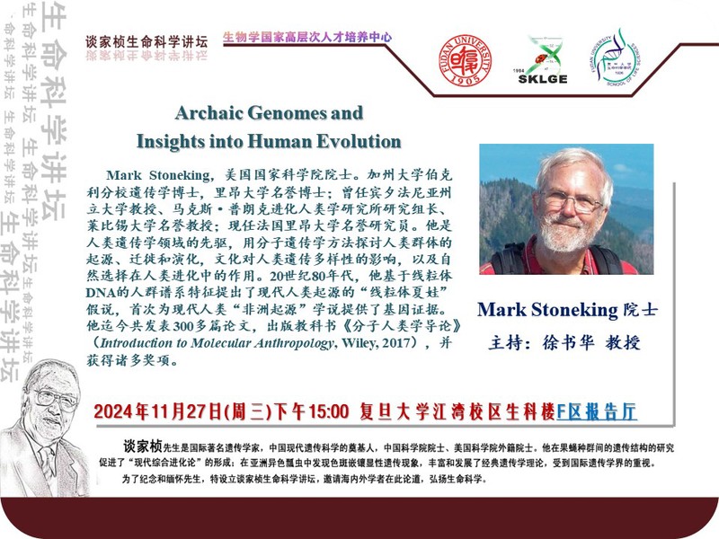 谈家桢生命科学讲坛-2024-11月27日(周三)下午15:00,Mark Stoneking(美国国家科学院院士,法国里昂大学)