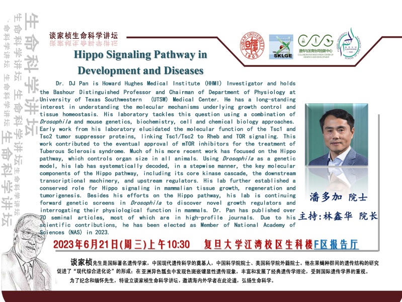 谈家桢生命科学讲坛-2023-06-21(周三)上午10:30,潘多加 院士(霍华德-休斯医学研究所(HHMI))