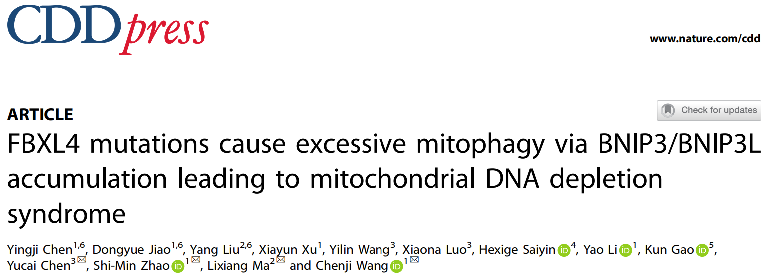 2023年8月12日,耽美漫画 王陈继团队、基础医学院马丽香团队、附属妇产科医院赵世民团队和上海市儿童医院陈育才团队合作在Cell Death & Differentiation在线发表了题为 FBXL4 mutations cause excessive mitophagy via BNIP3/BNIP3L accumulation leading to mitochondrial DNA depletion syndrome的研究论文(图一)。该研究发现FBXL4基因突变导致线粒体自噬(mitophagy)受体BNIP3和BNIP3L蛋白异常积累,线粒体自噬过度激活,进而导致线粒体数目急剧下降,是其突变致病的内在分子机制。