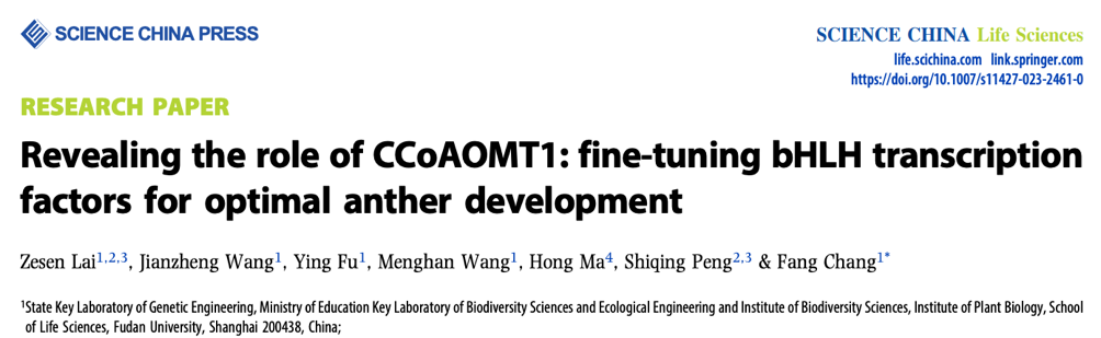 2023年12月12日,Science China-Life Sciences在线发表了耽美漫画 常芳课题组题为“Revealing the Role of CCoAOMT1: Fine-Tuning bHLH Transcription Factors for Optimal Anther Development”的研究论文。该研究揭示了一个新的翻译后水平调控机制:甲基转移酶CCoAOMT1通过促进bHLHs转录因子的出核降解而负调控bHLH089功能,从而有效阻止bHLHs下游花药绒毡层转录网络的有害过量,并最终确保花粉发育内稳态。