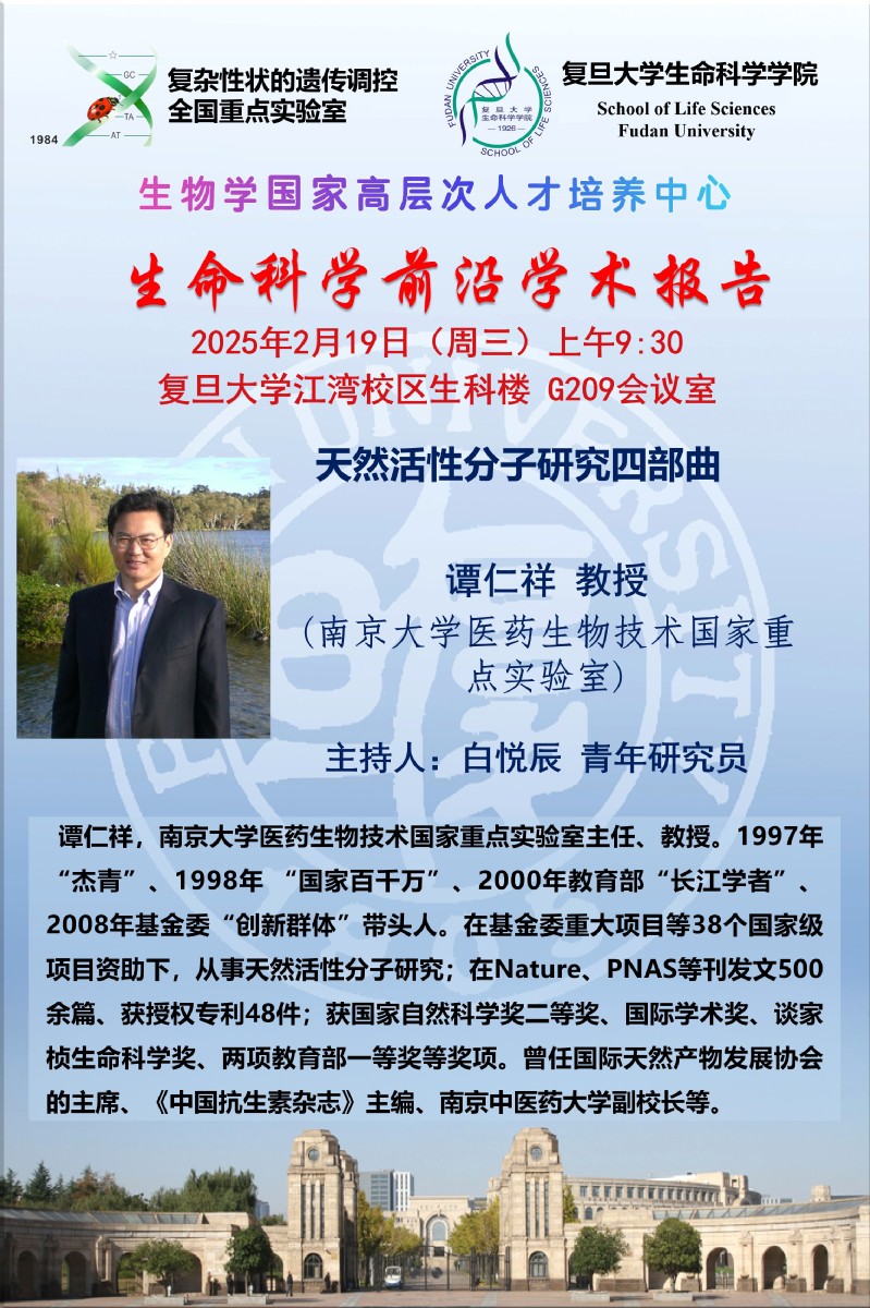 生命科学前沿学术报告--2025-2-19(周三)9:30,谭仁祥 教授(南京大学医药生物技术国家重点实验室)